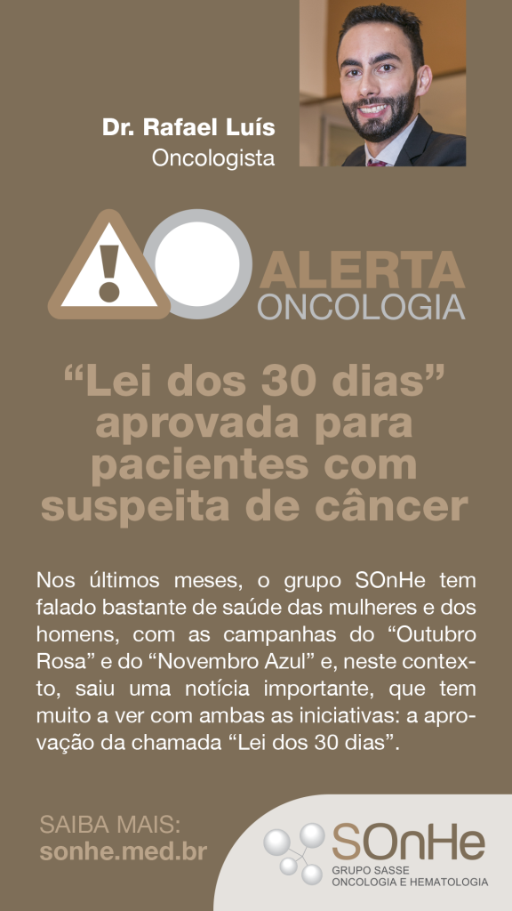 Nos últimos meses, o grupo SOnHe tem falado bastante de saúde das mulheres e dos homens, com as campanhas do “Outubro Rosa” e do “Novembro Azul” e, neste contexto, saiu uma notícia importante, que tem muito a ver com ambas as iniciativas: a aprovação da chamada “Lei dos 30 dias”. Essa Lei (nº 13.896 de[...]
